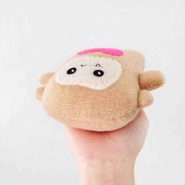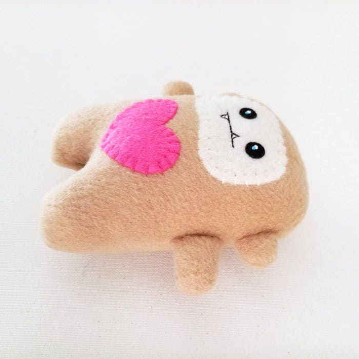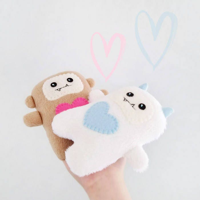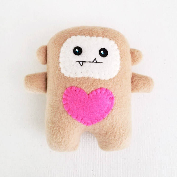 You can carry Baby Bigfoot wherever you go or just use him as a home decor by placing him on a bookshelf, office desk, or on a window. Baby Bigfoot is great for kids and infants to play with because all the materials used is safe. It is made with fleece, wool felt, wool blend felt and cotton floss. 100% hand sewn and embroidered without use of glue. It is made with my own patterns and sketches. This was made to bring smiles to you and the people around you.